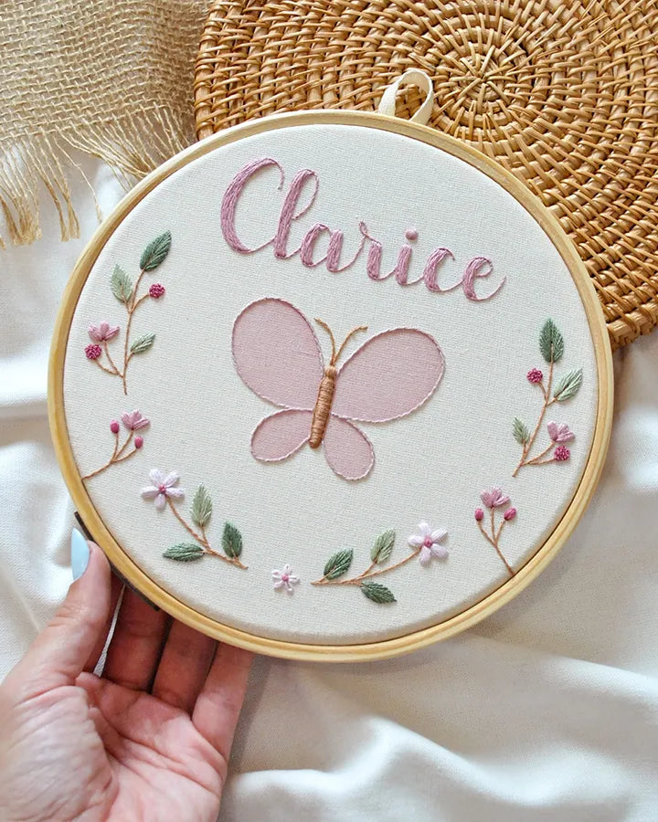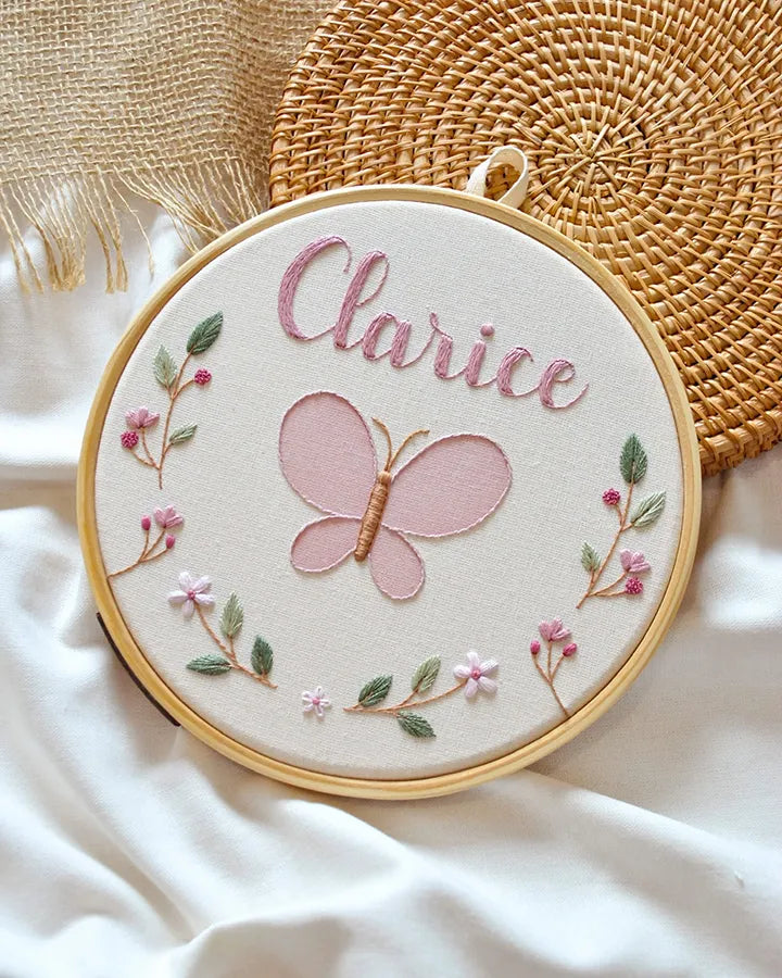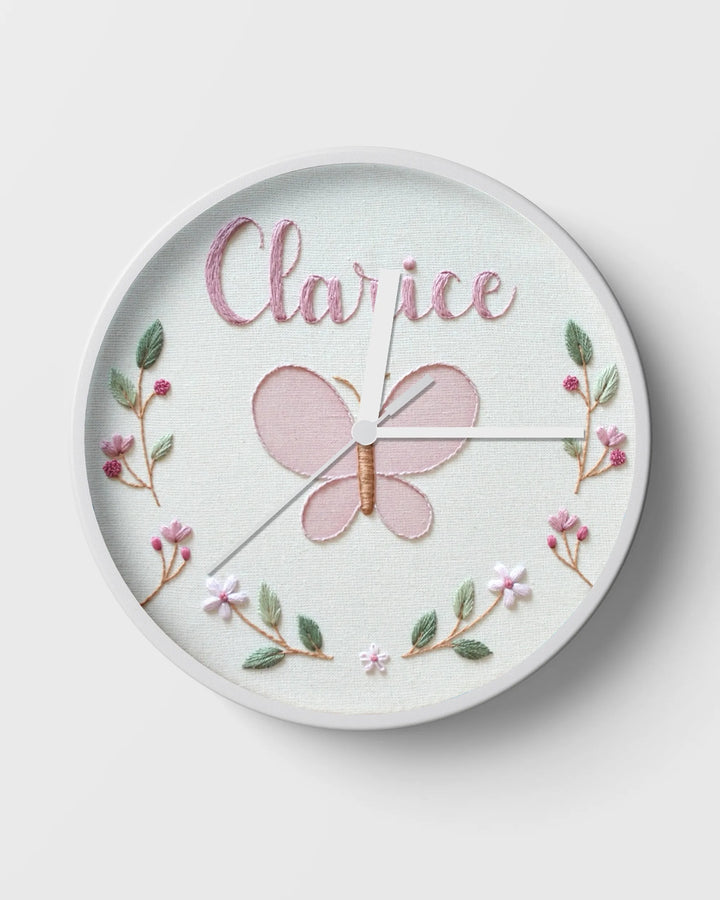 Ever notice how a child’s giggle can light up your whole day? This Personalized Wall Clock captures that joy with a charming design of pink butterflies fluttering among delicate, hand-embroidered flowers, all stitched with vibrant DMC thread. Your little one’s name is woven right into the scene, making it a heartfelt addition to their space. It’s not just a clock—it’s a daily reminder of their unique sparkle, perfect for a nursery, bedroom, or birthday surprise.